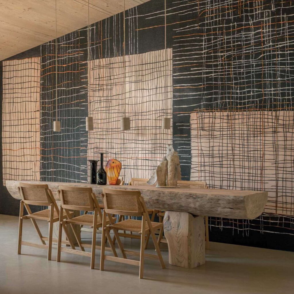 Het Elitis behang Sashiko is een groot abstract wandvullend panorama met 3 blokken en lijnen. De ondergrond van de voorstelling is van een linnenlook. Het is mogelijk meerdere panorama's achter elkaar te plakken maar wij kunnen het panorama behang ook speciaal op maat maken voor je.- Materiaal: Vinyl op een non woven backing