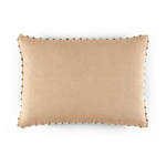 Gaia is linnen kussenhoesje met een geborduurde bies. Een kant is licht geel en een kant is bruin
