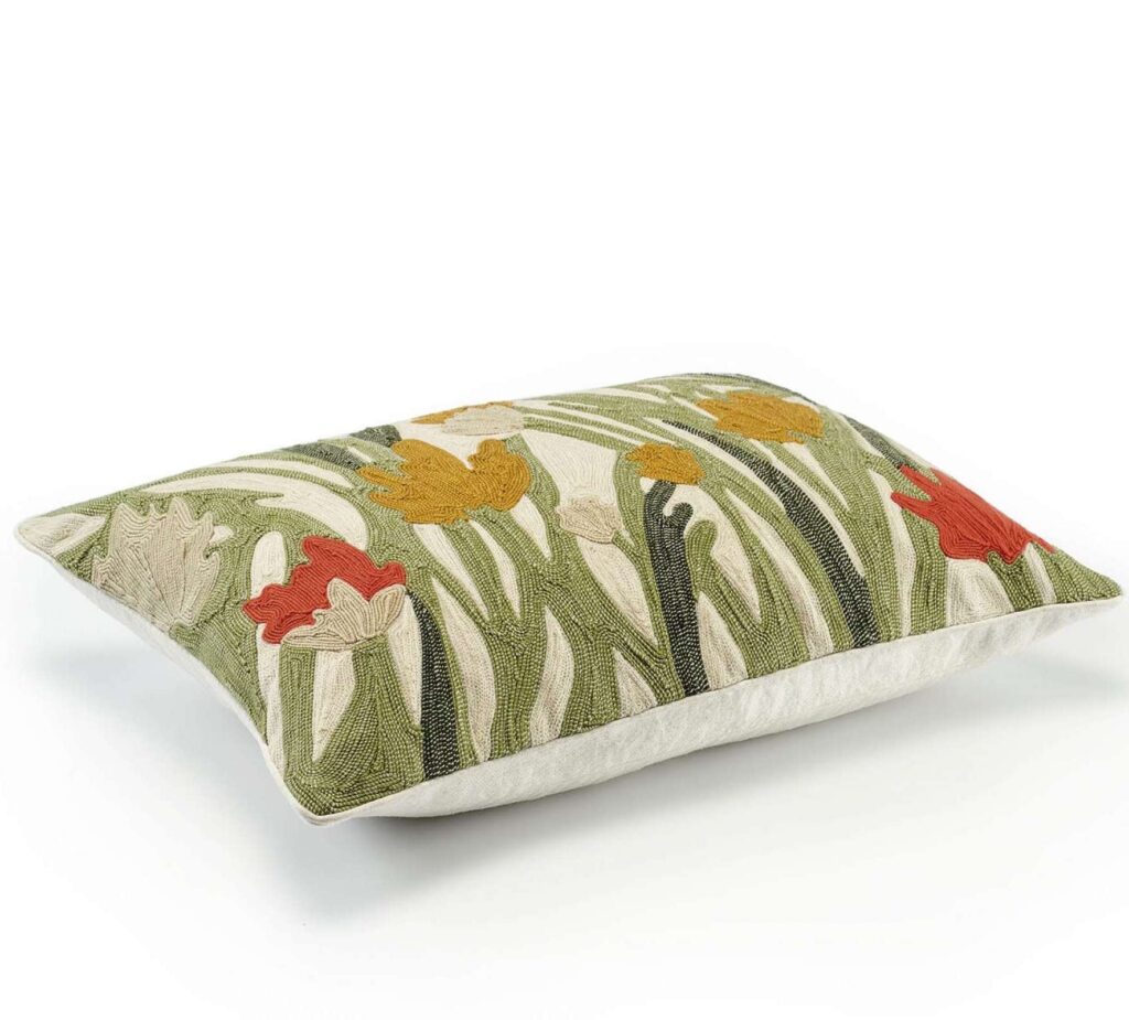 Kumori is een kussenhoesje met geborduurde bloemen. De achterzijde van het kussen is effen.