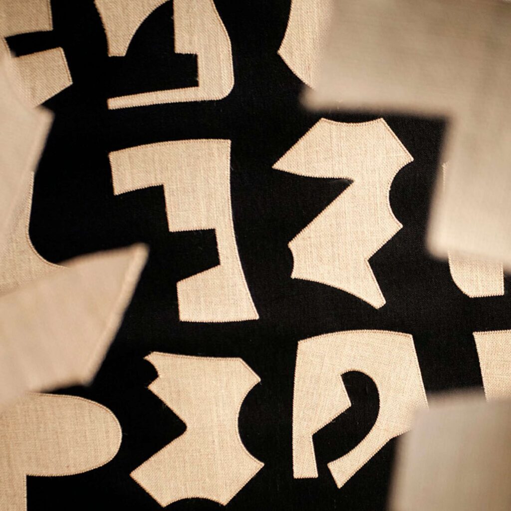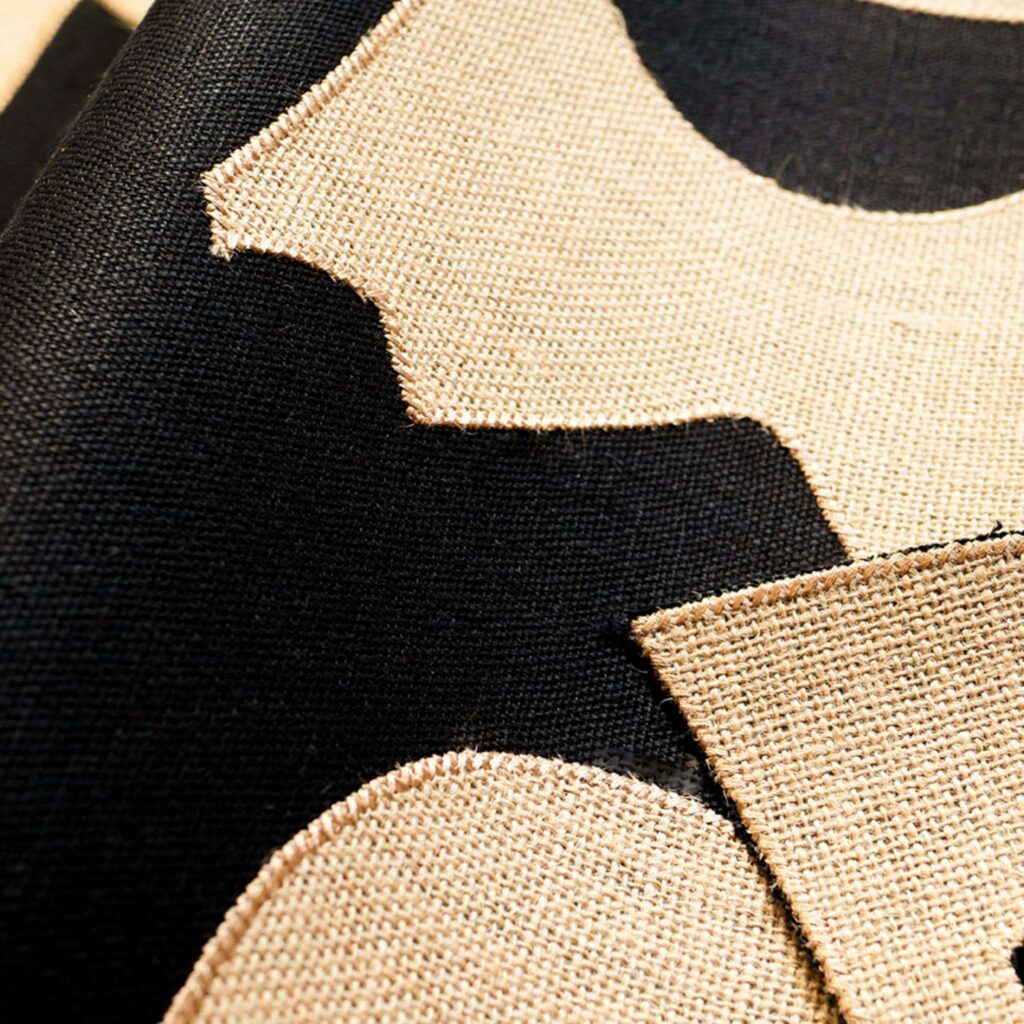 Luxe linnen behang met prachtig geborduurd patroon.